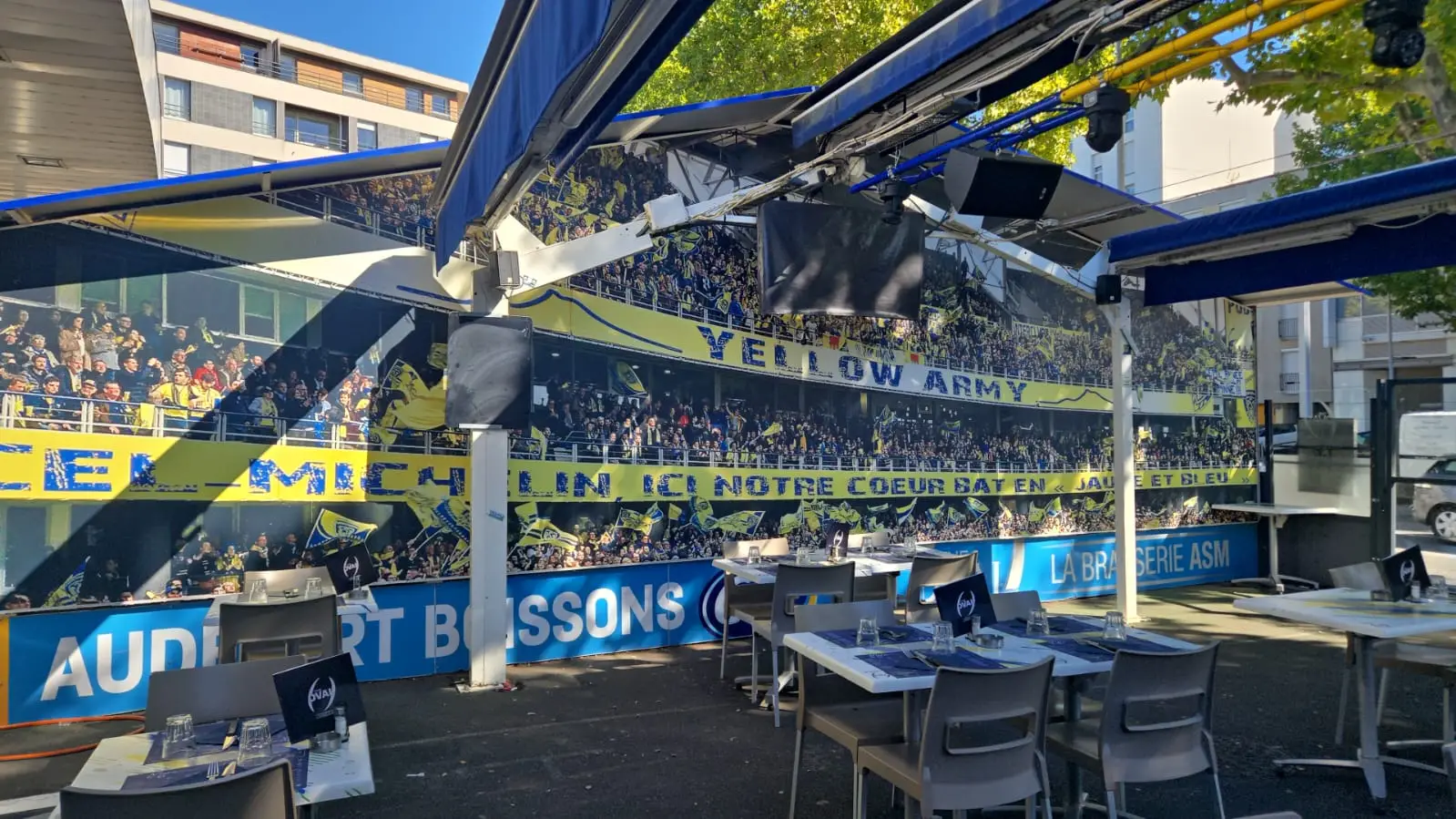 Le vent siffle entre les façades de l’avenue du Clos Four, un mardi d’octobre sans match ni clameur. Le Michelin dort encore. Sous ses grandes tribunes, la grande verrière de The Oval renvoie un éclat doré. La brasserie officielle de l’ASM frémit doucement. À travers les vitres, on devine des silhouettes, un feu de cuisine, des éclats de voix. On pousse la porte : l’atmosphère a une texture. Un mélange de bois ciré, de café torréfié et de cuir chaud. Au bar, la mousse se couche lentement sur les verres. Pas de cris, pas de chants – juste des murmures et des souvenirs.