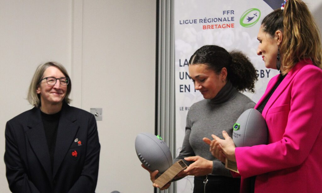 L’excellence au féminin a été mise à l’honneur. C’est Anne-Sophie Demoulin, élue au Comité d’orientation stratégique de la FFR et présidente du Stade Rennais Rugby, qui a eu la charge de remettre les trophées à deux ambassadrices de luxe : Caroline Drouin (30 sélections) et Lénaïg Corson (34 sélections), deux carrières exceptionnelles.