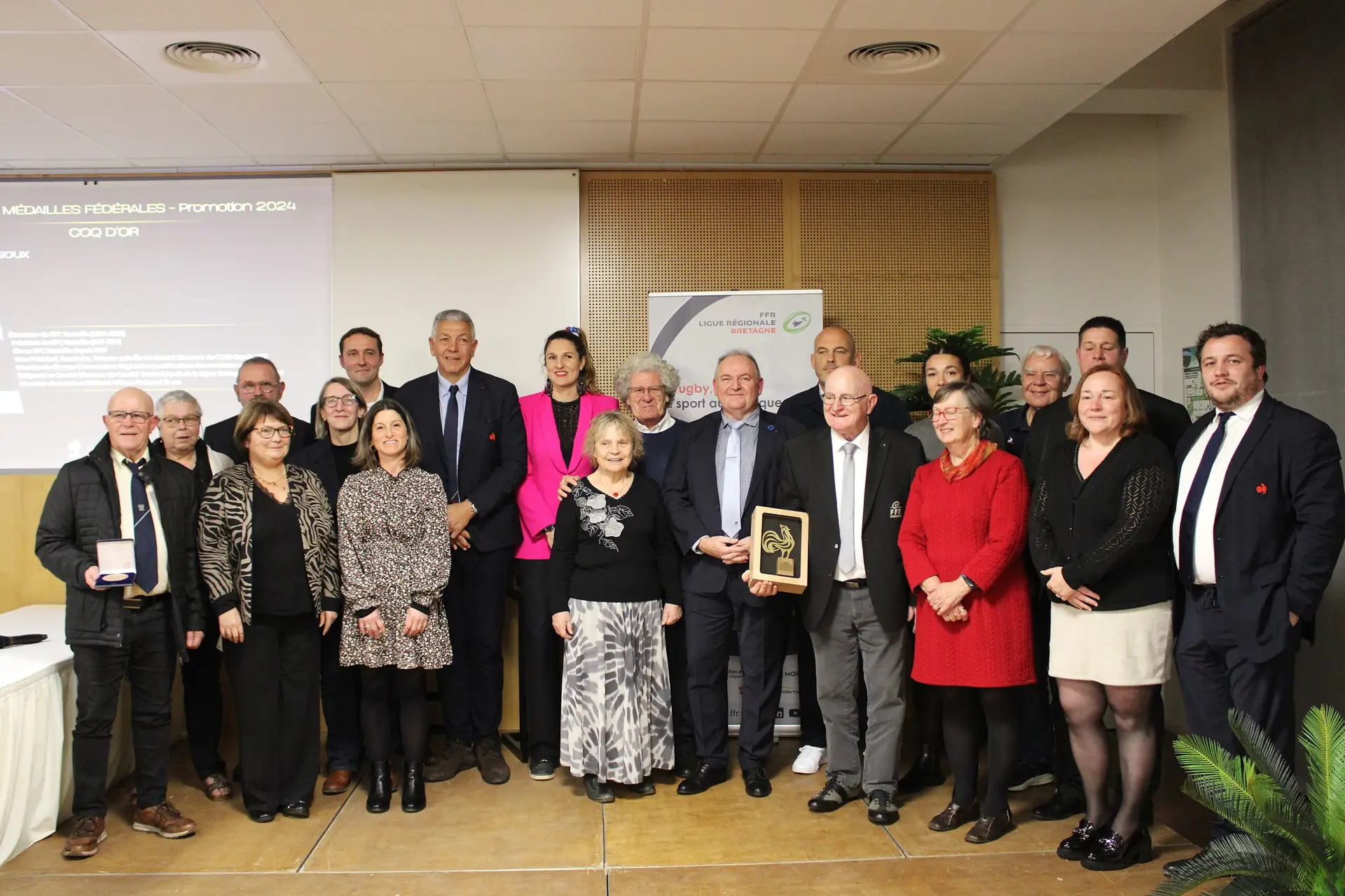 des clubs primés par la Ligue et la FFR ainsi que l’émouvant Coq d’Or décerné à Jacques Brisoux pour l’ensemble de son œuvre, la soirée a pris une tournure plus solennelle avec la remise des Trophées d’Honneur. La Bretagne a su célébrer ses monstres sacrés, à commencer par Jean-Noël Spitzer.