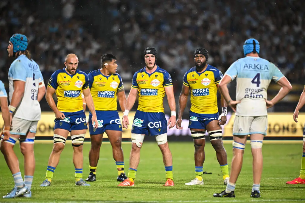 Michael Alaalatoa (deuxième joueur en jaune en partant de la gauche), quitte Clermont. Photo Anthony Bibard - Icon Sport.