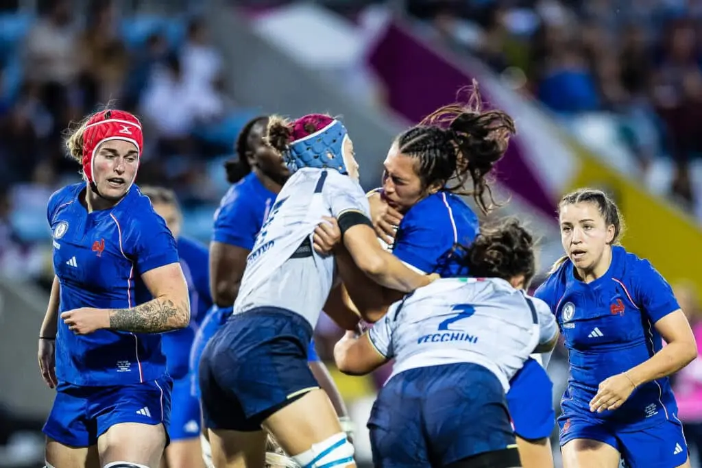 Côté face en revanche, le duo de sélectionneurs Gaëlle Mignot – David Ortiz peut aborder la suite de la compétition avec la satisfaction d’avoir battu le rival principal de la poule D. Si l’animation offensive n’a pas fonctionné comme sur des roulettes, le secteur défensif a en revanche été une satisfaction puisque les Bleues n’ont pas encaissé le moindre point et n’ont globalement laissé que des miettes à l’Italie dans ce match, si ce n’est une occasion en deuxième période bien annihilé par la centre Gabrielle Vernier. Très intéressante pour son retour dans le XV de départ tricolore, la Blagnacaise a d’ailleurs été élue femme du match. Un trophée qu’elle aurait pu partager avec Charlotte Escudero, auteure d’un essai et meilleure plaqueuse de la rencontre (17, un raté).